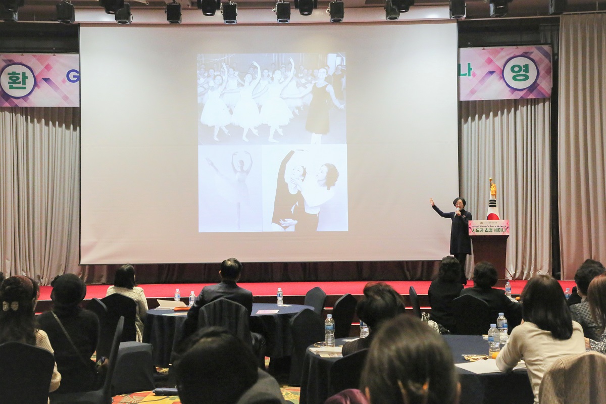 문훈숙 세계회장(여성연합)은 특강에서 “여성연합의 창설자 양위분께서는 일찍이 문화와 예술의 중요성을 알고 계셨기 때문에 리틀엔젤스예술단과 유니버설발레단을 창단하였음을 알리며, 세상을 움직이는 문화, 예술처럼 우리 여성 지도자들도 아름답게 세상을 바꾸어 나갈 수 있도록 다함께 노력하자”고 당부했다.