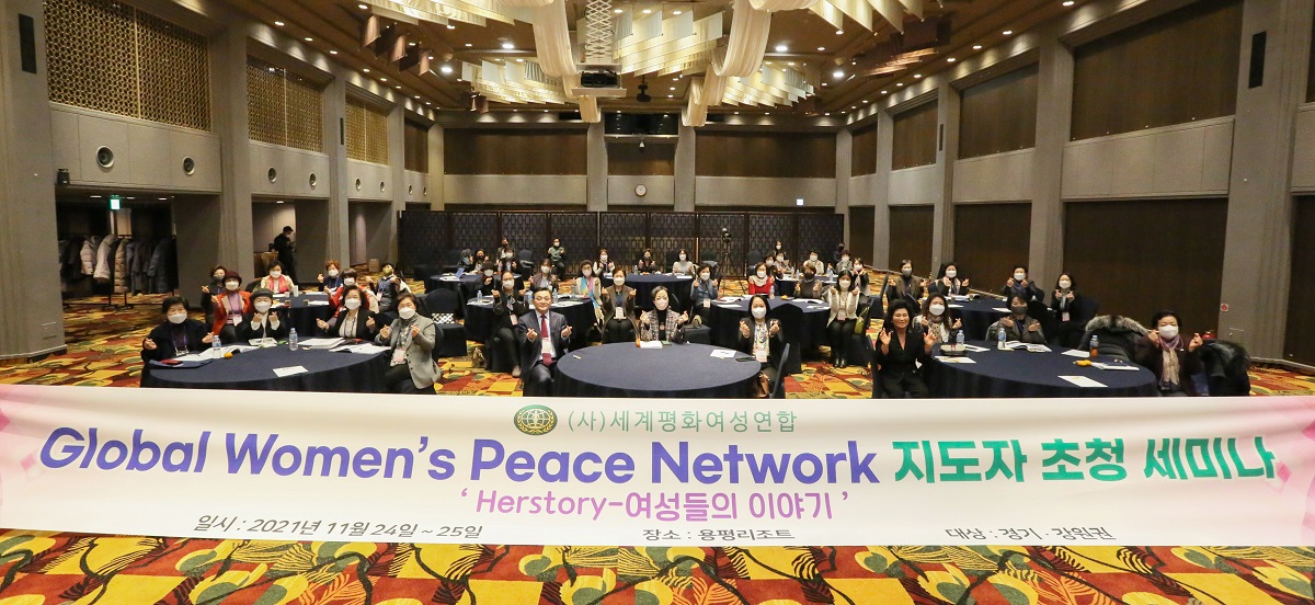 11월 24일에서 25일 용평리조트 드레곤밸리 호텔 그랜드볼룸에서 개최된 ‘Global Women’s Peace Network 지도자 초청 세미나'는 ‘Herstory-여성들의 이야기’를 주제로 그 동안 GWPN를 통해 관계 맺은 지역 여성지도자를 중심으로 단체 간의 교류와 협력·파트너십을 형성하여 통일운동과 지역 기반 조성 확대를 위해 개최되었다. 금번 세미나에는 경기·강원권 지역의 여성지도자 54명이 참석한 가운데 개회식, 환경·문화 특강, 직능단체 활동소개, 지도자 교류, 통일 특강, 모나파크 용평 탐방 순으로 진행되었다.