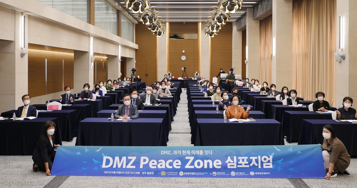 세계평화여성연합(회장 문훈숙, ‘이하 여성연합’)과 유엔한국협회(회장대행 이호진)는 남북한 유엔 동시 가입 30주년, 한국전쟁 발발 71년을 맞아 분단의 상징인 DMZ의 활용방안을 모색하기 위해 ‘DMZ, 과거 현재 미래를 잇다’라는 주제로 29일, 경주 황룡원에서 DMZ Peace Zone 심포지엄을 개최했다고 밝혔다.