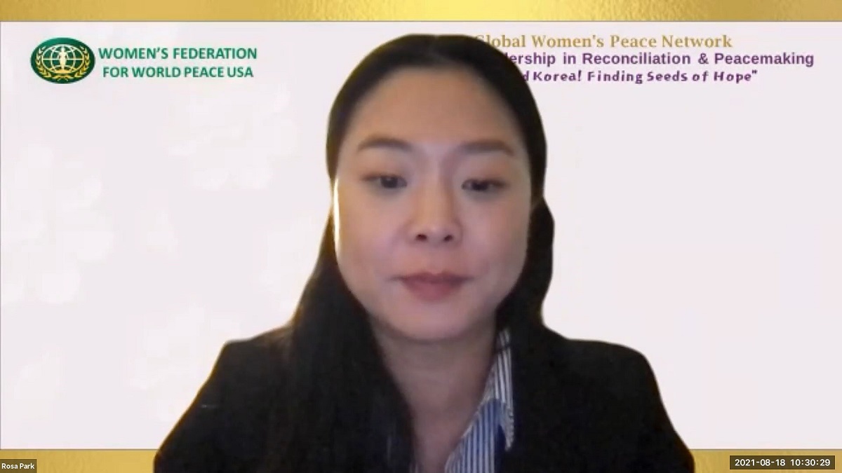 재미교포 3세인 Rosa Park 국장은 북한인권위원회 편집자로서 북한사람들과 탈북자들의 취재를 해 왔다. “오늘 이 자리에 참석하신 모든 분들이 각자 어떻게 통일에 기여할 수 있는지 고민해 보는 것이 하나의 시작점이 될 것입니다. 동참하기에 너무 작거나 너무 큰 문제는 없습니다. 저도 개인적으로 이것에 대해 여러번 생각을 해보았습니다. 오늘 참석해주신 모든 분들이 북한인권위원회의 다양한 보고서를 보며 한반도 분단에 대해 생각해보고 통일한국 안에서 어떤 역할을 할 수 있을지 생각 해보는 시간이 되시기를 바랍니다.”고 하면 발제를 마쳤다.