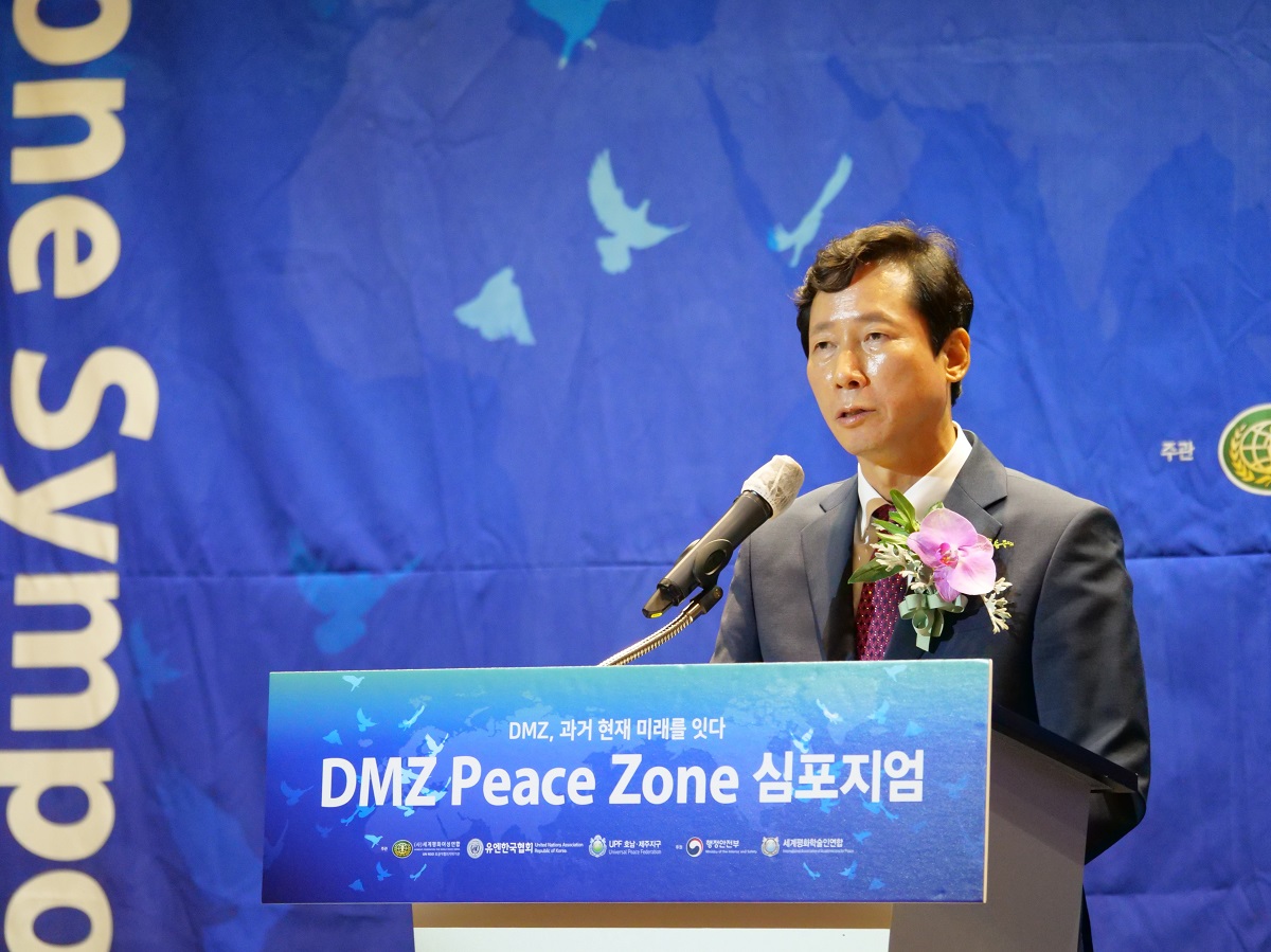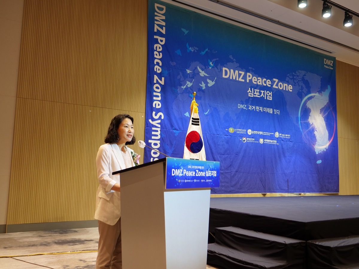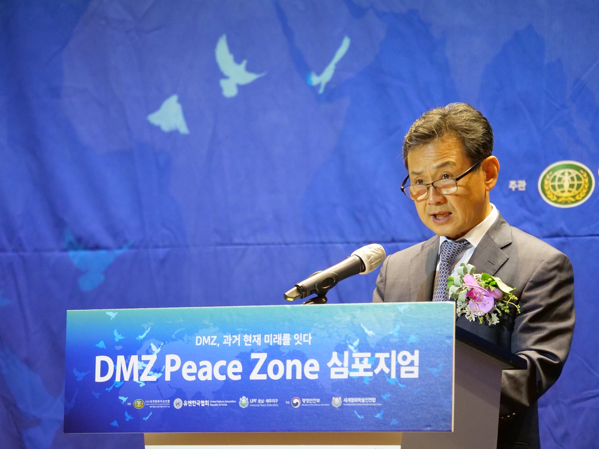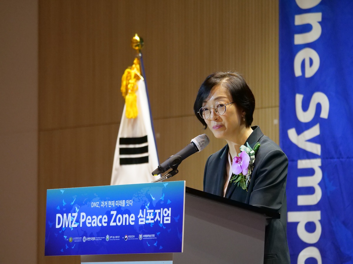 문훈숙 회장은 환영사에서 “우리는 이념이나 진영논리에 갇혀 국가의 청사진을 그려서는 안 된다. DMZ 문제도 이제는 사실적 차원의 논의를 넘어 국가의 미래, 우리 다음 세대를 생각하며 새로운 상상력을 보여줄 때라고 생각한다. 이제는 한반도 분단에 책임이 있는 강대국들이 분단을 극복하고 세계평화에 기여하도록 책임과 역할에 대해, 보다 적극적으로 호소할 필요가 있다. 심포지엄을 통해 많은 국민이 DMZ 문제와 유엔을 연결해 생각하는 논의가 확산되기를 소망하고, 더 나아가 세계와 함께, 유엔과 함께 신통일한국을 실현할 수 있는 새로운 역사를 쓰는 일에 함께하기를 바란다”라고 전했다.