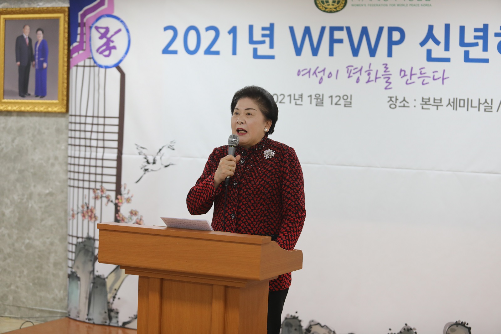 이날 문훈숙 세계회장은 신년인사를 통해, “올해 여성연합의 활동방향으로 4가지의 정책을 수립해 나가겠습니다. 첫째는 GWPN(글로벌여성평화네트워크)을 통한 여성 지도자들의 네트워크 확대, 둘째는 평화 기반 조성을 위한 ‘Peace Zone’ 구축 운동 전개, 셋째는 참가정 운동으로 건정한 성가치관 확립해 나갈 것입니다. 넷째로는 역량강화를 통해 여성지도자와 20대 30대 미래인재들을 양성하여 여성연합의 미래를 준비해 나가겠습니다.”고 2021년도의 활동방향을 제시하였다.