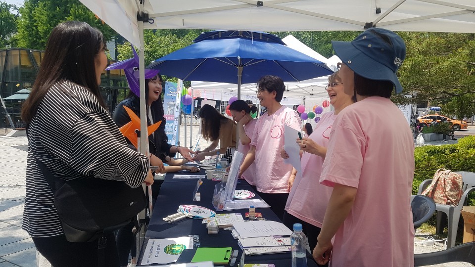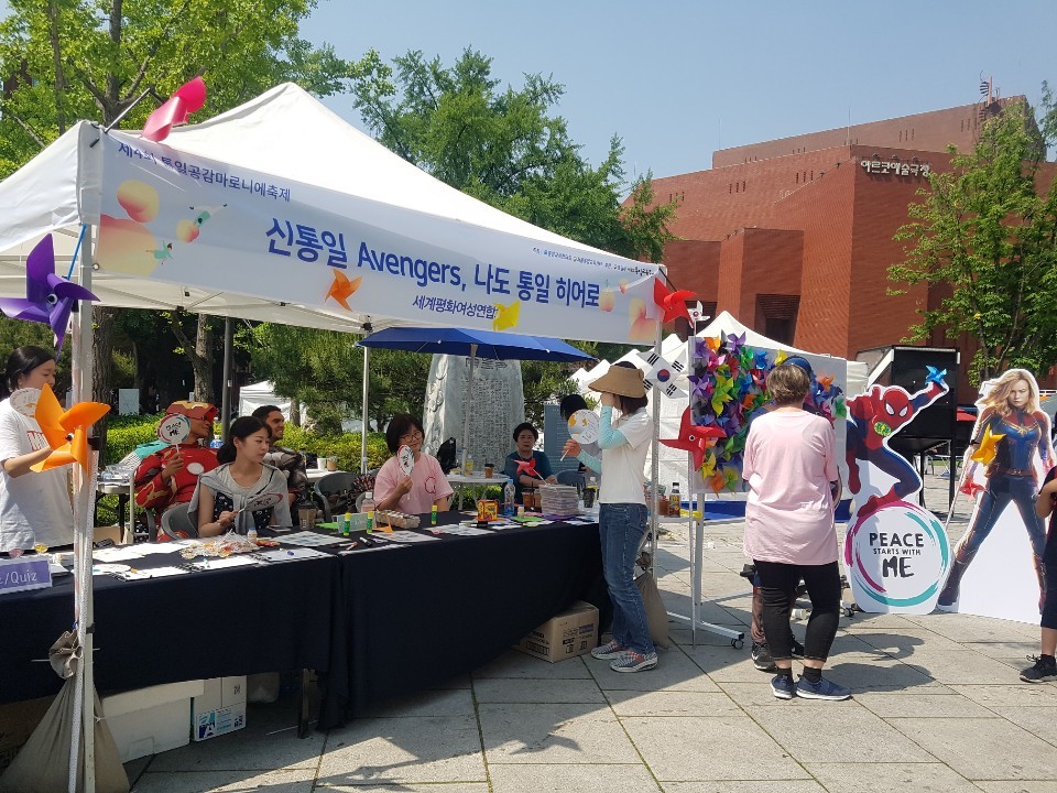 여셩연합 부스에서는 남북통일 관련된 타투스티커 체험을 시작으로 하여, 남북 관련 퀴즈, 통일바람개비 메시지 작성 및 바람개비 제작, 히어로과의 사진 촬영, 그리고 VR로 떠나는 평양 관광, 등의 프로그램을 진행하였다. 행사장을 찾는 시민들에게 단순한 축제가 아닌, 남북통일의 필요성 전달과 인식 전환의 기회를 제공할 수 있도록 여성연합 회원들이 부스운영을 하였다.