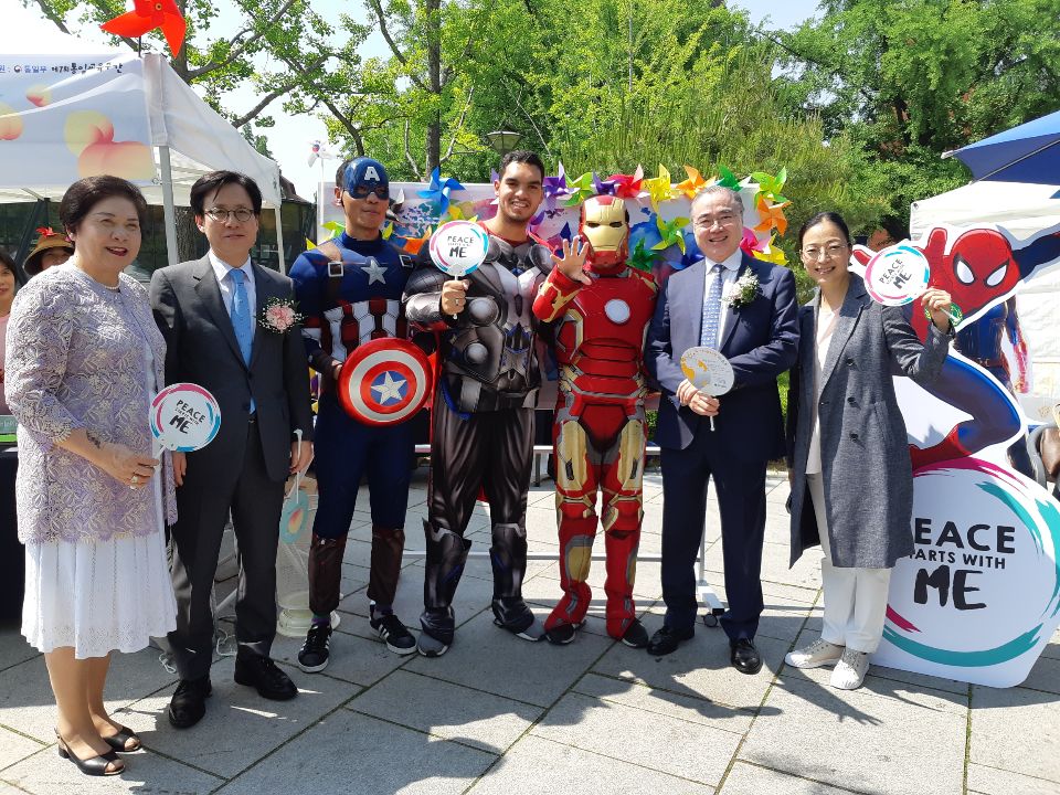 5월 23일(목)과 24일(금) 오전 11시부터 오후 5시까지 서울특별시 대학로 마로니에 공원에서 통일교육협의회와 서울통일교육센터가 주최하는 2019 통일공감 마로니에축제가 열렸다. 청소년, 대학생, 성인 등 다양한 세대가 공감하는 통일교육 마당을 제공하기 위한 장으로 통일부에 소속하고 있는 기관 및 단체들이 함께 운영하고 있다. 여성연합은 한반도평화는 우리 모두의 협력 과제로 ‘평화는 나로부터 시작한다’는 의식을 가질 수 있도록, 우리 모두가 통일을 희망하는 히어로가 되자는 의미로 ‘신통일 Avengers! 나도 통일 히어로!’라는 부스명을 걸고 참여하게 되었다.