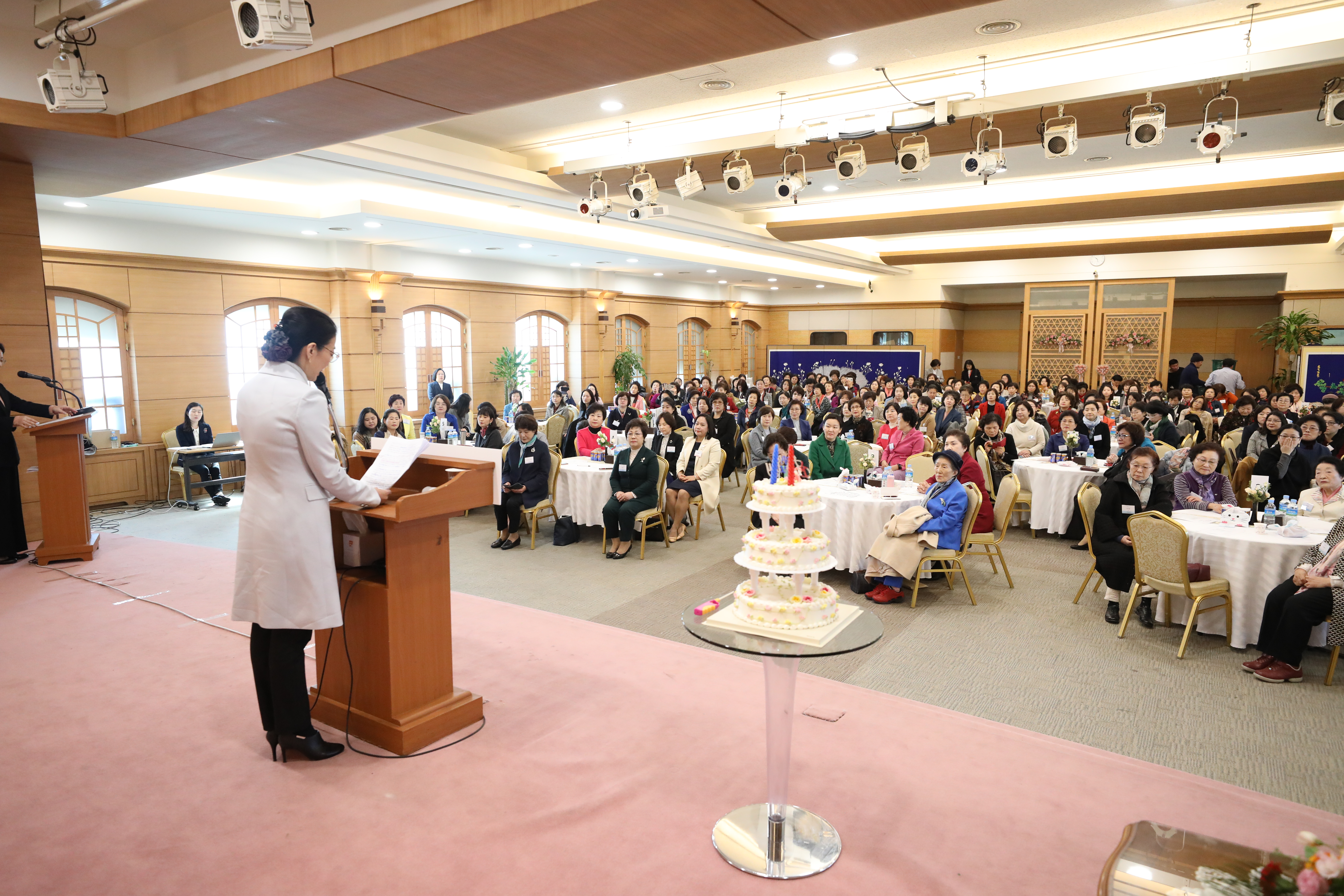 세계평화여성연합 창립 27주년을 기념하여 창립기념식이 4월 2일(화) 오전 10시부터 서울 청파동 가정연합빌딩 8층 대강당에서 250 여명의 회원들이 참석하는 가운데 개최되었다. 한순실 국장의 개회로 시작된 기념식의 제1부는 국민의례, 우리의 다짐, 2018년도 WFWP 활동 영상상영, 문훈숙 세계회장의 기념사, 케익 커팅, 축가 순으로 진행되었다. 이어서 제2부에는 문연아 전 세계회장의 감사인사, 최영선 전 한국회장의 감사인사, 홍성순 본부부회장의 송사, 선물 및 꽃다발 증정, 축하선물 증정 순으로 진행되었다.