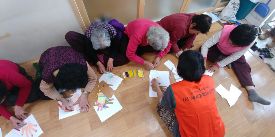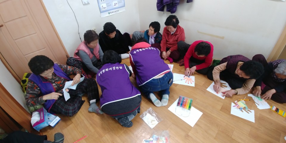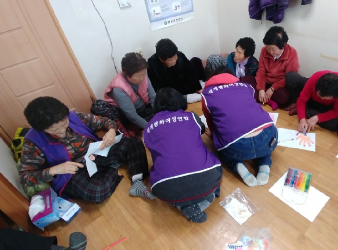 2018년 2월 24일 함양군 유림면 재궁마을에서 여성연합 함양군회장과 회원들께서 노인들의 건강한 삶을 살기위한 손 모양 만들기 활동을 했다.