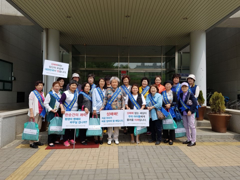 매월 ‘파주시문화회관’에서 실시되고 있는 파주시여성단체의 월례회의에 참석했습니다. 회의 종료 후 금촌 시내를 걸어 다니면서 성매매 반대운동을 실시했습니다.