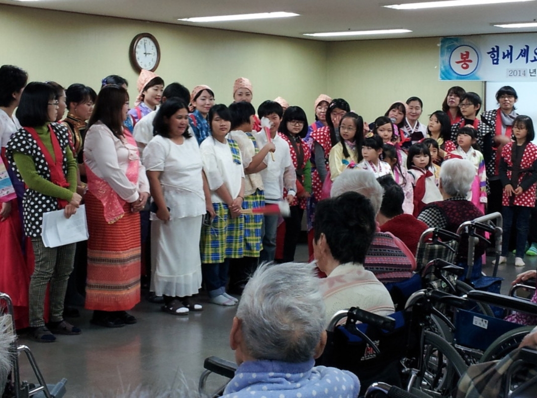 The Dangjin Branch (Branch Leader: Mal Rye Park) visited local nursing homes on February 8. Twenty-four members and sixteen of their children gave singing and dancing performances to promote the culture of multicultural families, and they also took the time to get to know the elders of Korea. Through the cultural performances, they let it be known that women from diverse nations are working in the Women’s Federation for World Peace.