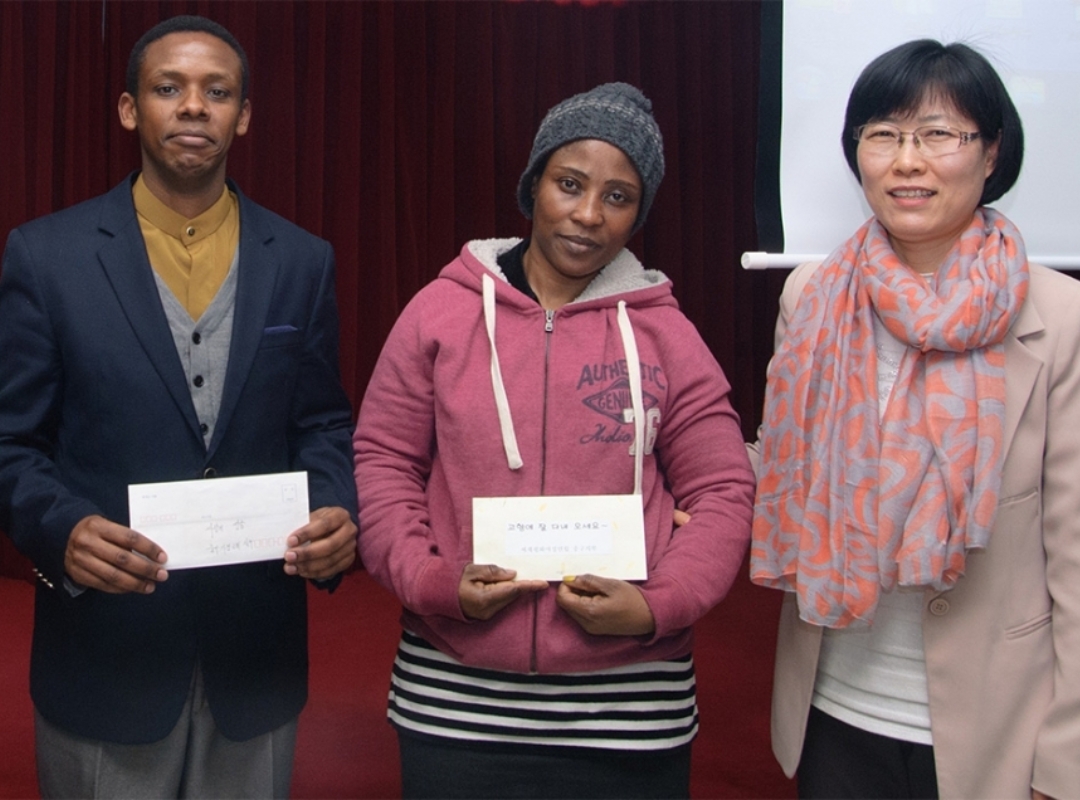 Members of the Junggu Branch prepared articles of clothing and stationery with care for the children of Cote d’Ivoire who need them very much, as well as a donation, which will be delivered to them by Mrs. Abby when she visits Cote d’Ivoire in late February.