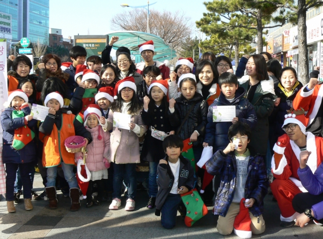 The East Changwon Branch (Branch Leader: Kimari Morris) held a workshop about the worldwide activities of the WFWP on December 22, 2013, after which members and thirty or so children of members carried out a fundraising event together in local marketplaces and streets. Though it was a cold day, all the participating children took part with a glad heart. In addition, the East Changwon Branch also performs a free lunch service at the Banji Welfare Center of Changwon and holds Japanese classes for multicultural families every week.