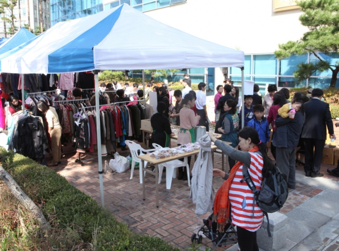 From October 19 to 20, Cheon Bok Gung Branch (Branch Leader: Jin Ok Choi) hosted the ‘Fourth Cheon Bok Bazaar’ to support the ‘1 % Love Share Project’ and help multicultural families as an annual event. For the bazaar, the goods to be sold were collected over a month or so, following the campaign of economizing, sharing, exchanging, and reusing, and 850 donated articles including items used by the True Family, Ilhwa products as well as sportswear and caps for professional baseball players were also prepared. They also prepared eatables to be sold. On the first day, the 19th, they sold Mongolian traditional food, sports items, and Ilhwa products, and on the second day, the 20th, they sold the items of economizing, sharing, exchanging, and reusing campaign, in addition to the traditional food of Mongolia, the Philippines, and Japan. The bazaar served as an opportunity for the participants to not only buy excellent goods cheaply from the various stalls including that of economizing, sharing, exchanging, and reus