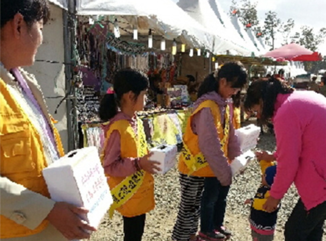 Yeongam Branch (Branch Leader: Mitsiyo Ikeda) of South Jeolla Province held a fundraising event for the ‘1% Love Share Project’ on the grounds of the Wangin Chrysanthemum Festival. On November 23, they visited the poor senior citizens of Weolsan-myeon who make a living by collecting and selling used paper and metal objects, and lent them a helping hand. In addition, the members also regularly carry out moxa treatment service for the elderly in local regions.