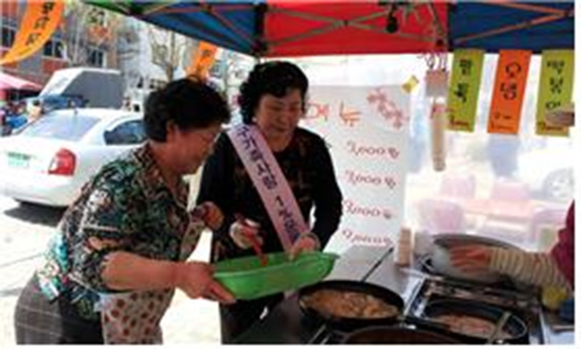 In addition, from April 19 to 21, the Suwon Branch held a ‘1% Love Share Project’ bazaar at the ‘Cherry Blossom Festival’ hosted by Suwon City, and they also sold snacks. Though the members, as well as the branch leader, were enthusiastic, the first two days were cold and rainy and their sales were low. On the third day, however, the weather was nice and many people came to the Cherry Blossom Festival, and so they achieved a good result.