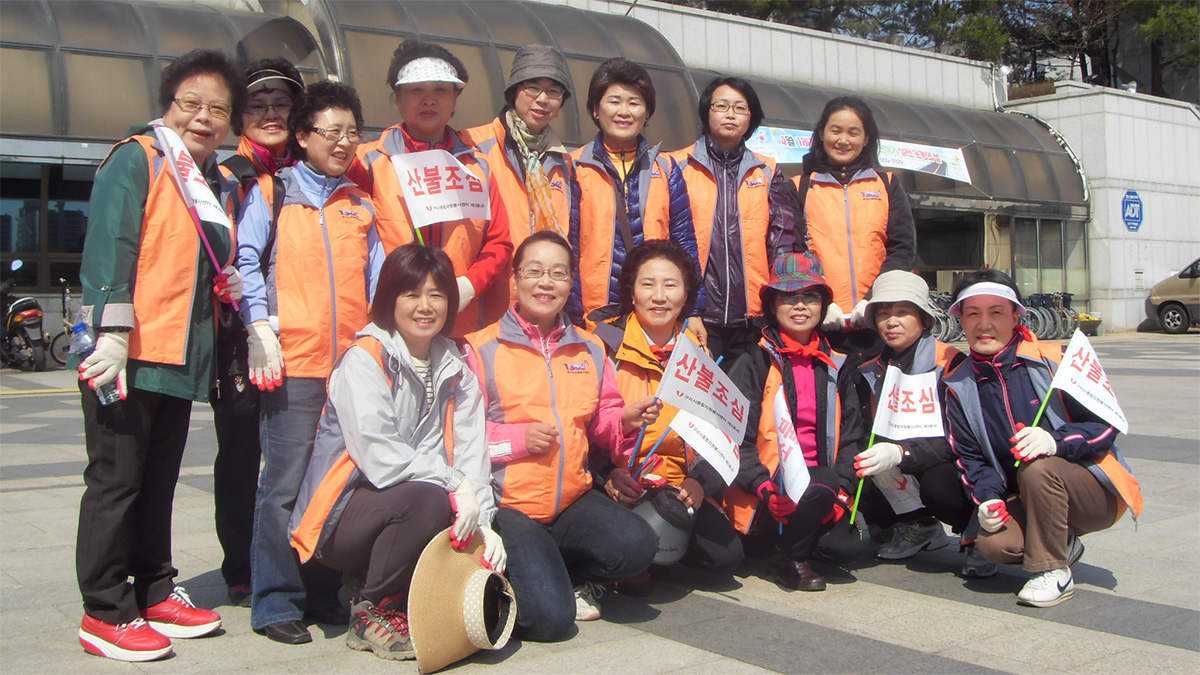 Fifty members of the Guri Branch of North Gyeonggi Province (Co-Branch Leaders: Hye Rim Moon, Myeong Sook Lee) participated in the wildfire prevention campaign and clean up volunteer activity of Acha Mountain and its environment on April 13.