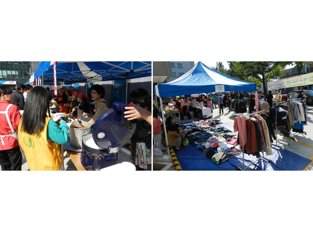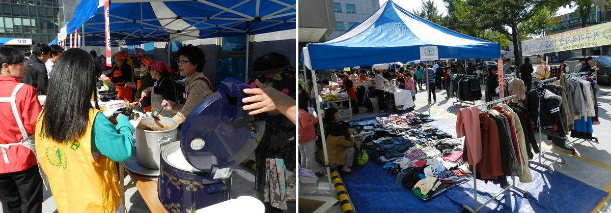 전주지부 앞 주차장에 부스를 설치하고 한국음식을 비롯하여 일본음식 필리핀음식 등 다양한 국적의 음식과 생활용품과 의류 및 재활용품도 판매하였다.