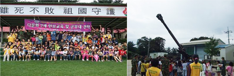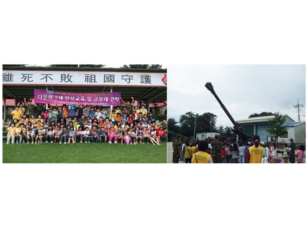 The Army base field trip, attended by eighty 4th to 6th graders from local multicultural families, included classes on national security, such as ‘Learning about the Korean Civil War’ and ‘Reasons Why the Army Is Necessary’.