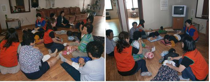 Since October of 2011, the Taebaek Branch (Branch Leader: Kimiko Sasaki) of Gangwon Province has been carrying out volunteer work twice a month through the Red Cross Volunteer Service, such as cleaning and helping out in Nursing Homes. The Branch also visits the Senior Center twice a month to give hand massages to the elderly and occasionally carries out neighborhood clean-ups thanks to the interest and cooperation of women members.