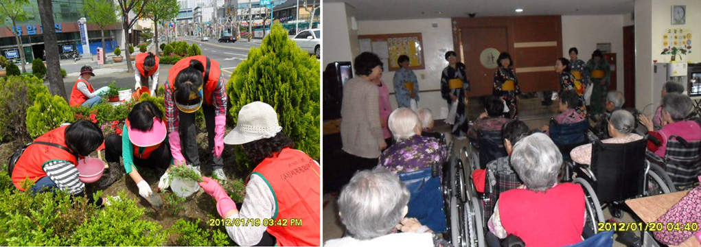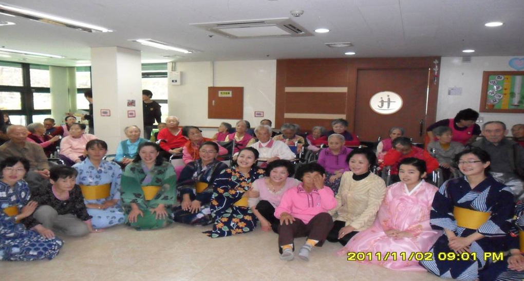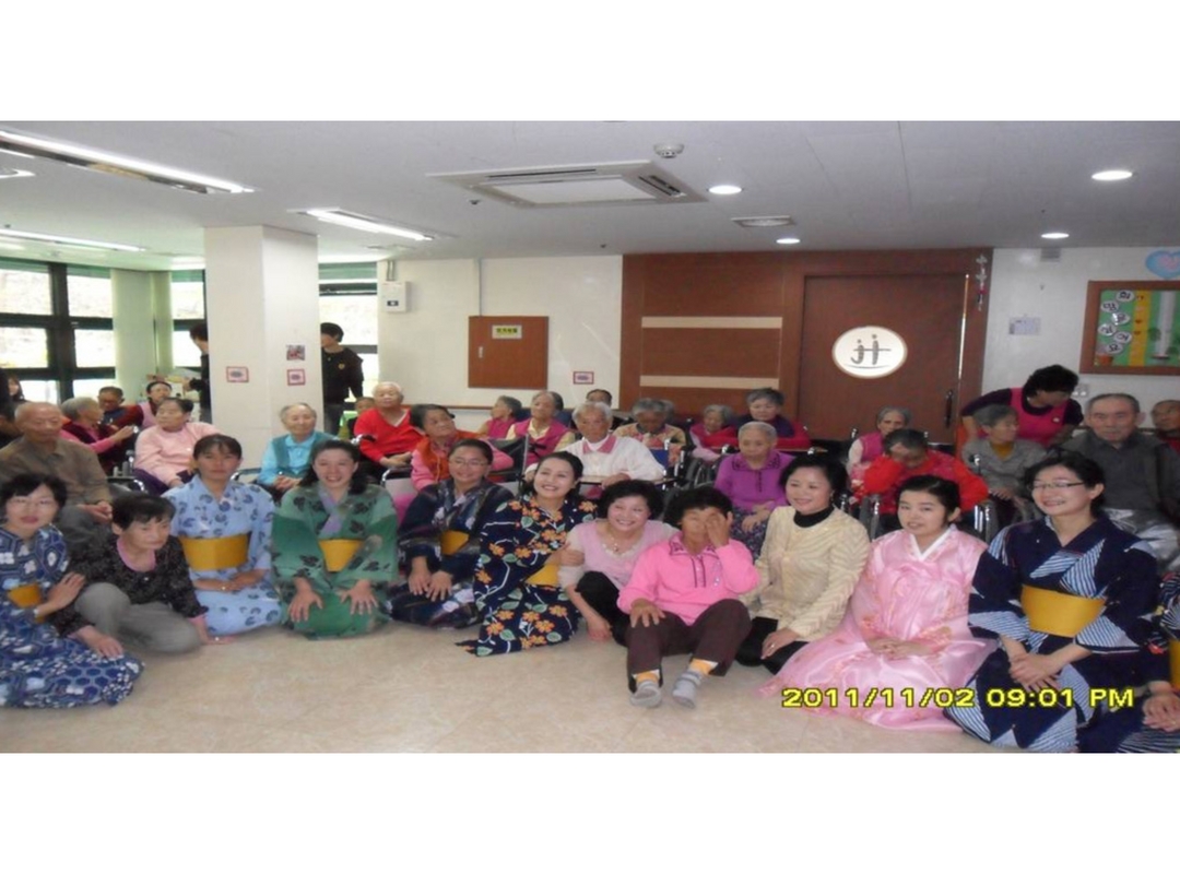 The members performed a Japanese traditional dance, a Korean traditional dance and the fan dance, and Leader Jeong Hee Gil delighted the elders with her singing.