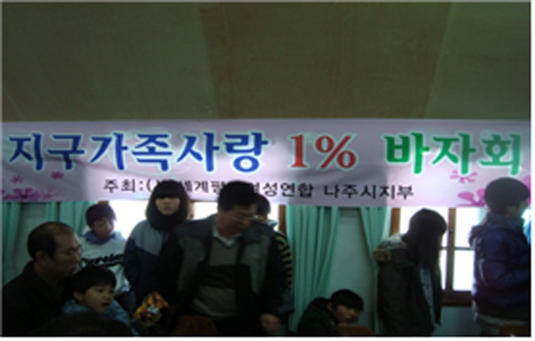 나주지부는(지부장:수지 가나에) 2011년 12월 25일 나주지부센터에서 푸드 바자회 개최하였다.