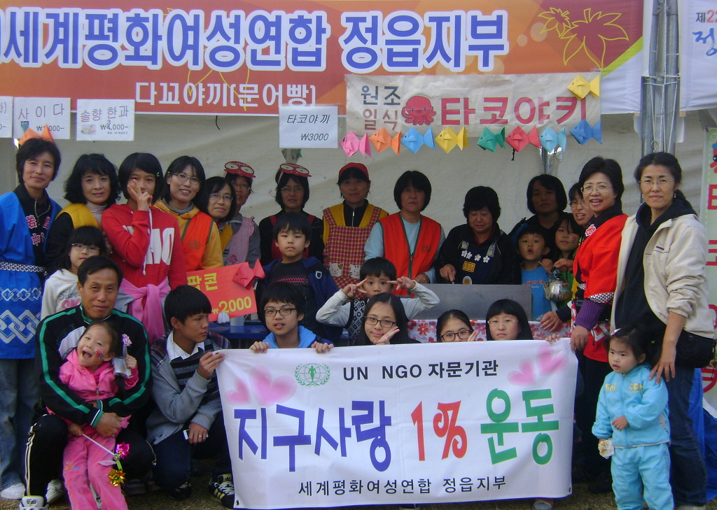 정읍지부(지부장:하다모토 노부꼬)는 2010년 작년부터 문화제에 참가하여 과 소년소녀가장을 위한 사업으로 일본음식과 제과 제빵 등으로 사랑의 실천 지원 사업 하고 있다.