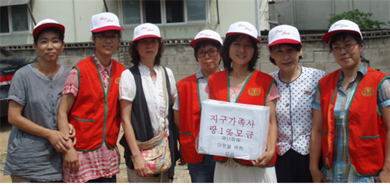 The Gyeongbuk Chungsong Branch (manager: Yoshida Michiyo) led a fundraising activity in Chungsong-eup. The Chungsong Branch collected money for people who suffered from damage by rain. It was a short time, one hour, but many people participated, so the Gyeongbuk Chungsong branch were appreciated by the community.