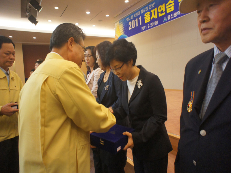 The Ulsan Branch (manager: Kim Young-hwa) received a group award certificate for its constant WFWP activity, and Branch Manager Kim received a personal award certificate from Mayor Park Mang-woo. All of the Ulsan branch members were deeply moved by the award in the name of WFWP.
