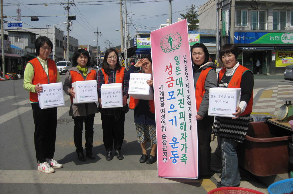 전북 순창지부는(지부장:나가오까 유우고) 지난 3월 20일 지역 5일장에서 일본 대지진 피해 돕기 모금 활동 전개 했다. 또한 순창가정연합교회에서 회원들과 함께 서로 바꿔 쓰고 나눠 쓰는 아껴 쓰자는 의미로 작은 바자회를 열었다.