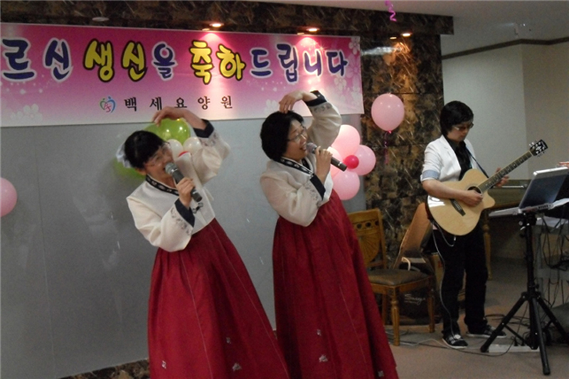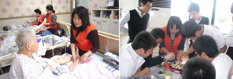 Also, they volunteered with foot massages at the Baekje Sanatorium on April 5 and participated in the Joint Birthday Party at the Iksan Baekse (means 100 years) Sanitarium on May 9 and 23.