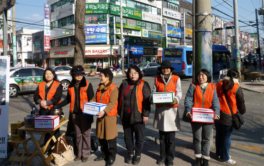 지난 3월 강원지부(지부장:손혜숙)에서 의 일환으로 지진과 쓰나미로 피해를 입은 일본을 돕고자 모금운동을 하였다.