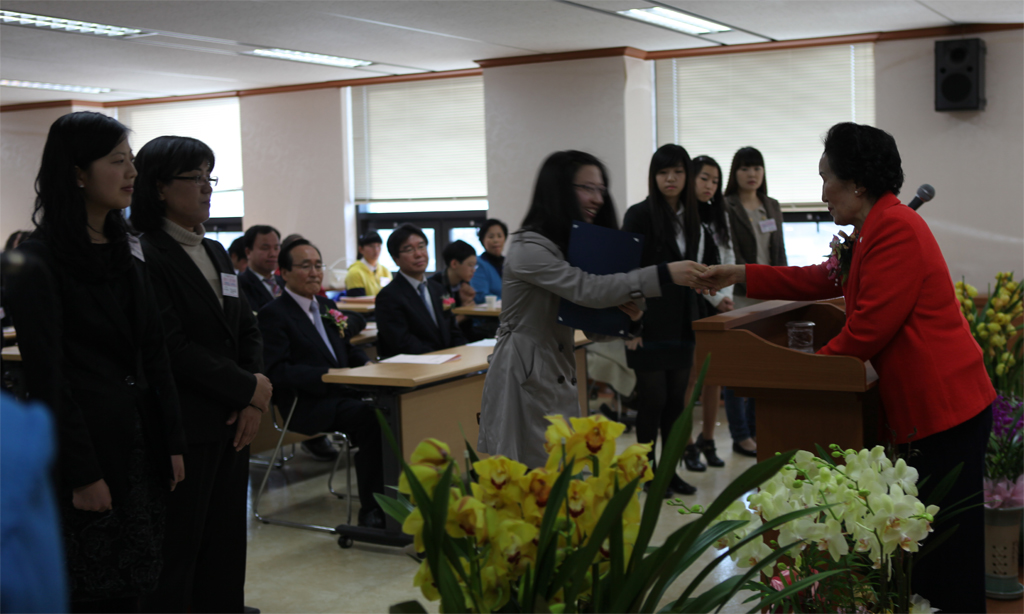 Director Young-sun Choi of the foundation emceed the ceremony, and greetings and reports were given by Operations Director Kim Mi-ju, Chairman of the Board Jung Dae-hwa. Pres. Yoo Jong-gwan of Segye Times newspaper gave words of encouragement, Secretary General Lee Hyeon-gyeong and Auditor Nam Chun-hong gave financial reports. The ceremony concluded with the presentation of scholarship certificates.