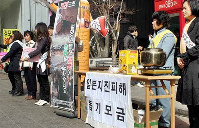 Japanese wives who married Korean men from the Chungbuk Cheongju-si Branch (Branch Manager Kim Jung-hee) went out into the streets to gather collections for Japan facing a crisis now from the giant earthquake.