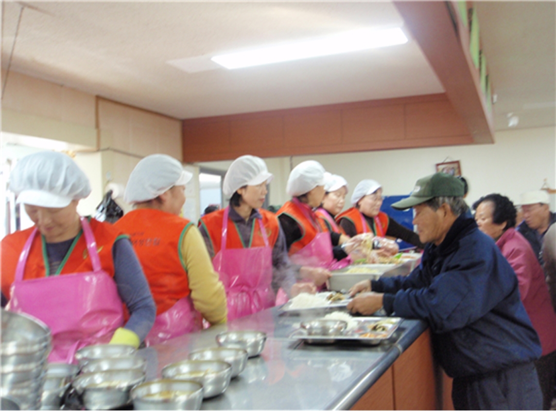 The Gyeongsangnam-do Changwon Branch did volunteer work preparing lunch, distributing food, and dish-washing, on Feb 24, 2011, at the Banji-dong Welfare Center.