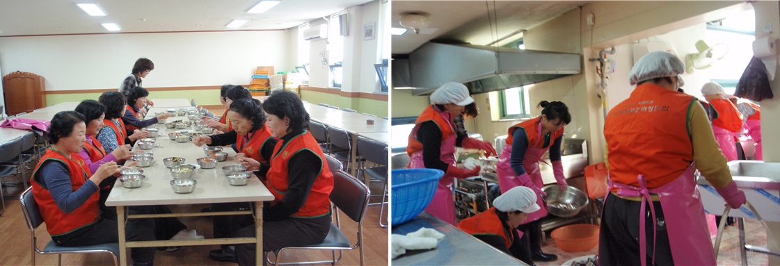 경남 창원지부(지부장: 장정화)는 반지동 복지회관에서 매월마다 진행하고 있는 중식준비 및 배식, 설거지 봉사활동을 2011년 2월 24일에 실시했다.