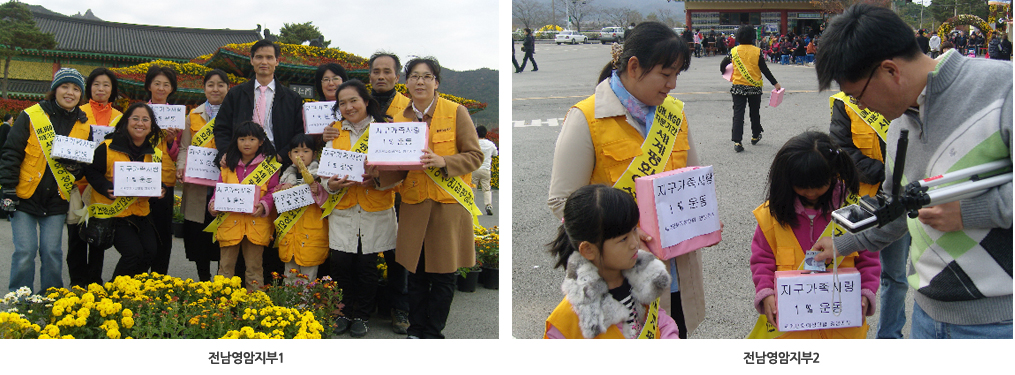 전남 영암지부(지부장:시미즈 요오꼬)는 지난 11월14일 왕인박사 유적지 국화축제 행사장에서「지구가족사랑 1% 운동」모금활동을 하였다.