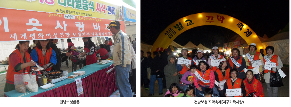 전남 보성지부(지부장:사또 기미꼬)는 12월 1일과 8일 보성초등학교와 벌교초등학교에서 「다문화가정 알기- 일본문화 체험학습」으로 다고야끼(일본 음식)와 공제품만들기를 실시하여 지역주민들과 학생들에게 체험의 장을 열었다.