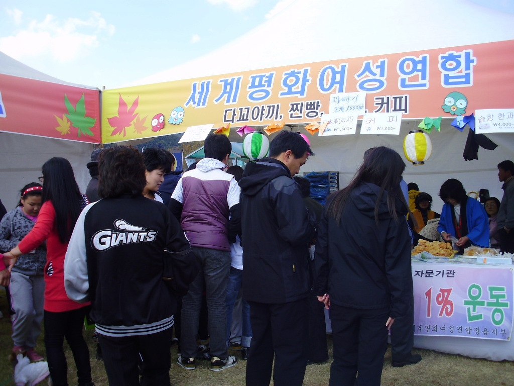 전북 정읍지부(지부장: 하다모코 노부꼬)에서는 10월30일부터 31일까지 이틀간 정읍사문화축제 통해 「지구가족사랑1%운동」사업을 운영했다.