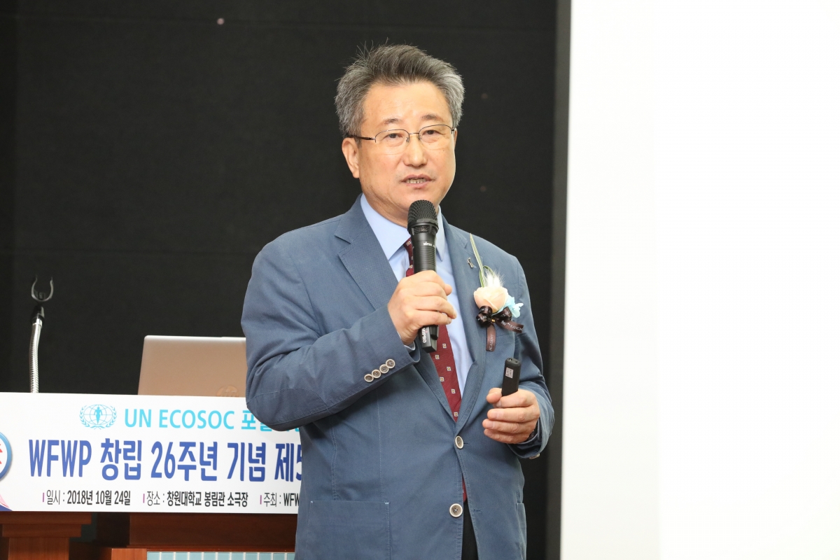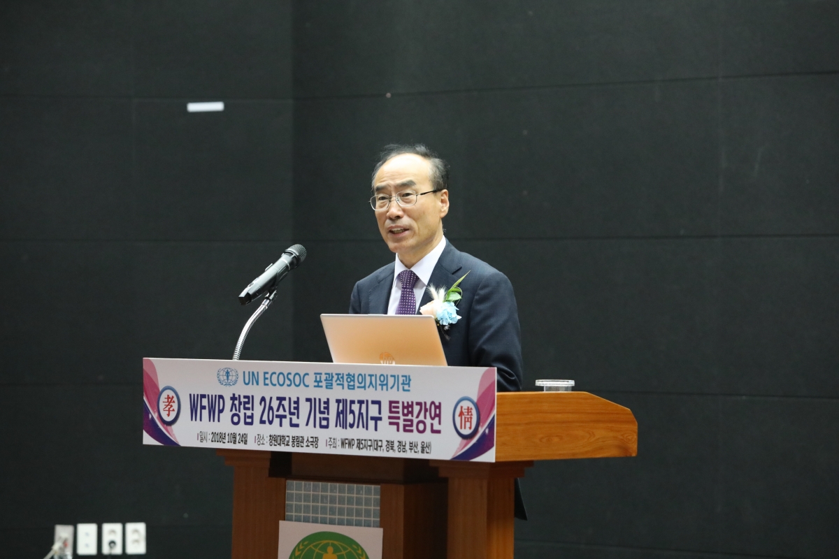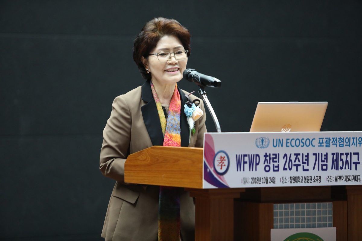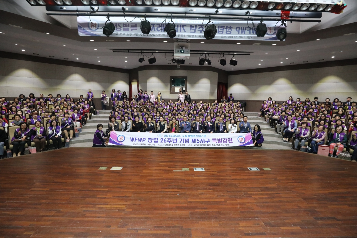 UN ECOSOC 포괄적협의지위기관인 세계평화여성연합은 창립 26주년을 기념하여 10월24일 오전 창원대학교 봉림관 소극장에서 홍양호 전 통일부 차관을 초청해 창립26주년 기념 ‘통일특강’을 개최했다.