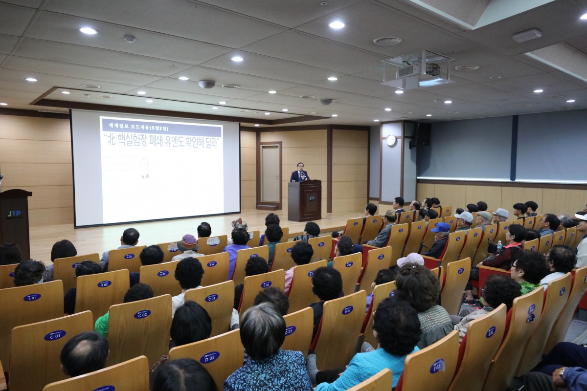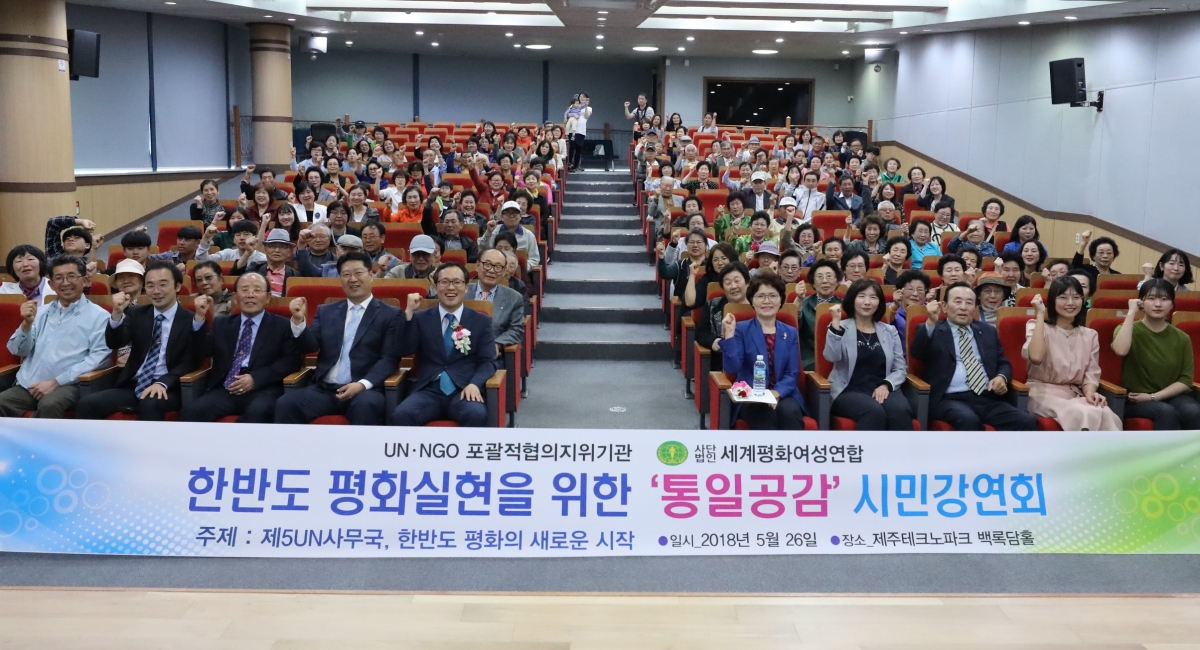 '제5UN사무국, 한반도 평화의 새로운 시작'의 주제로 제주시민 200여명을 초청하여 제주테크노파크에서 통일공감 시민강연회가