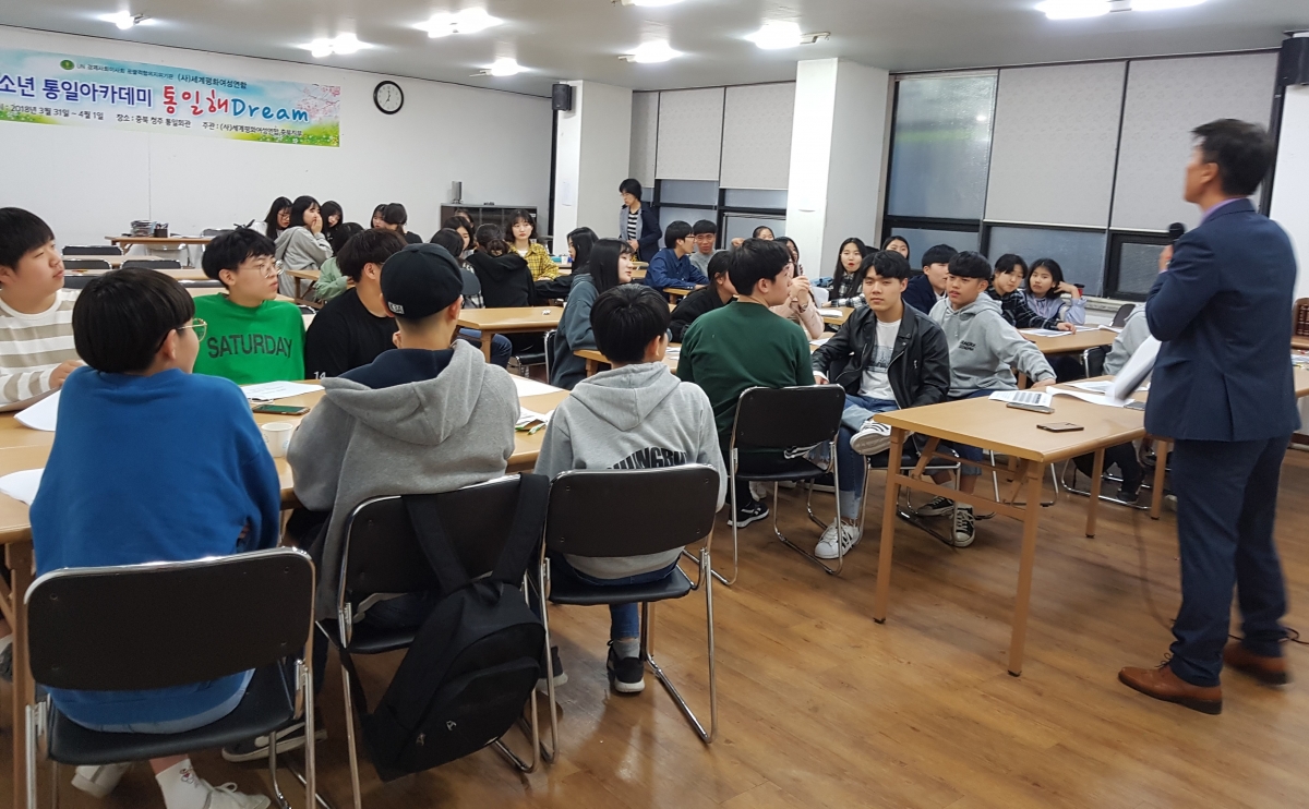 충북도지부 중.고등학교 청소년 70여명이 참석한 가운데 청소년 통일아카데미‘통일해Dream’을 진행 했다.