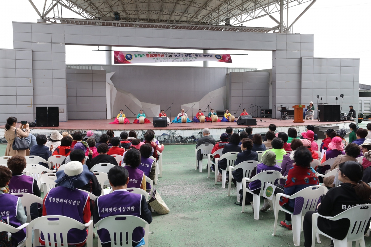 여성연합 2지구는 4월 13일(금) 경기 이천 설봉공원 야외 공연장에서 문연아 세계회장, 최영선 한국회장, 문혜림 2지구회장, 황보군 가정연합 2지구장, 2지구교구장등 여성연합 회원 700여명이 참석한 가운데 ‘WFWP 창립 26주년 기념식 및 ’제2지구 화합 통일 한마당’행사가 진행되었다.