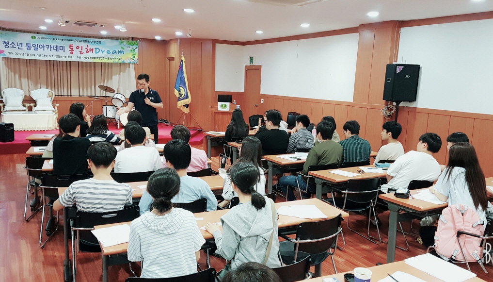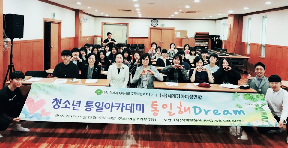 세계평화여성연합 서울 남부권지부는 5월 13일과 20일 그리고 27일~28일 서울남부지역 고등학생 청소년 40여명을 대상으로 청소년 통일아카데미 ‘통일해드림’ 통일교육을 실시했다.