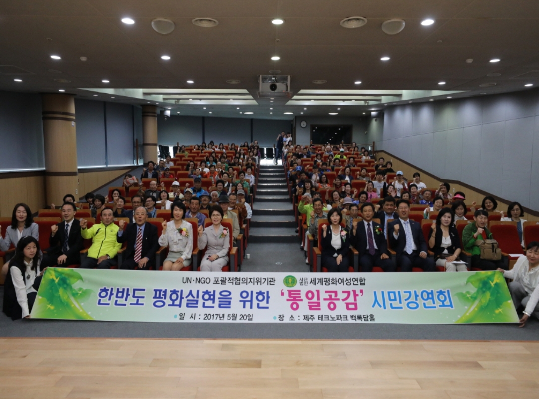 세계평화여성연합(이하 여성연합, WFWP)이 주최하고 세계평화여성연합 제주지부가 주관한 「통일공감-시민강연회」가 5월 20일(토) 제주 테크노파크 백록담홀에서 제주시민 및 회원 130여명이 참석한 가운데 개최되었다.