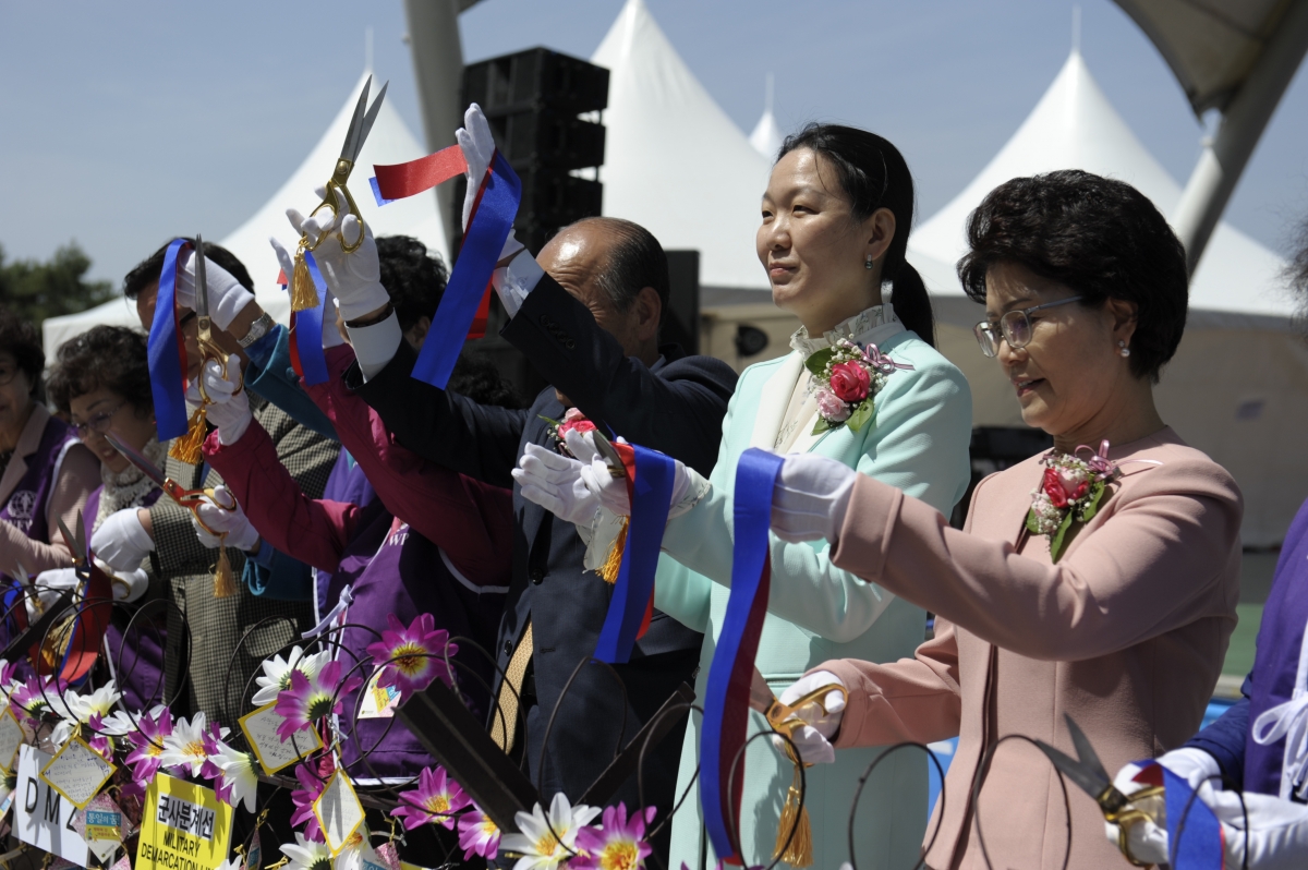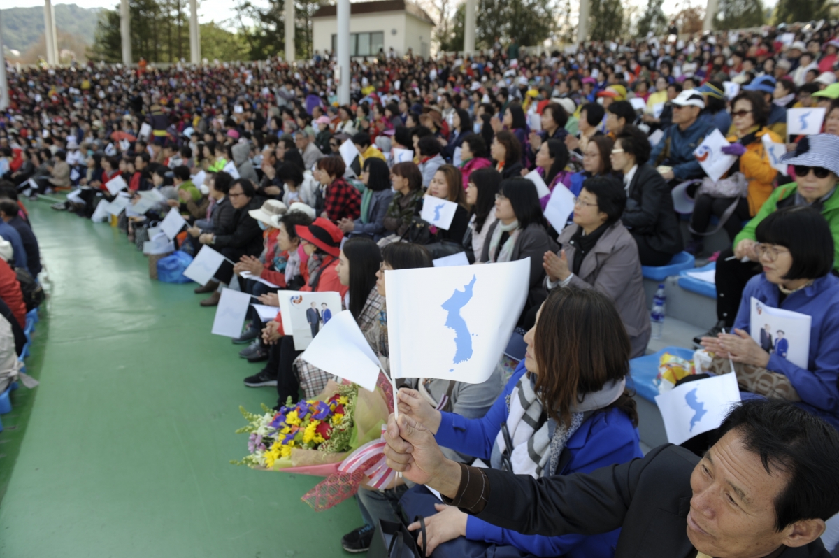 '통일 퍼포먼스'는 전국 시군지부장들이 통일소원을 카드에 적어 남북분단의 상징인 3.8선 철벽을 형상화한 ‘3.8선, DMZ철조망’에 통일을 염원하는 ‘통일메시지’를 달았다. 이후 분단의 3.8선 철벽을 어머니의 마음으로, 통일을 염원하는 마음으로 3.8선 철조망을 절단하는 시간을 가졌다.