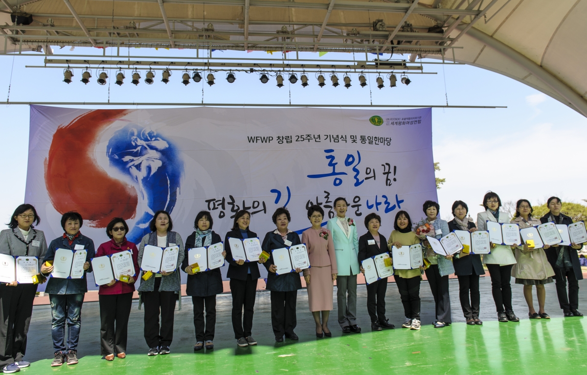 함께 참석한 여성연합 회원들과 시민들은 한반도기를 함께 흔들며 ‘통일의 꿈! 평화의 길 아름다운 나라’ 통일 대한민국을 힘차게 외치며 여성연합 창립25주년 기념식과 통일한마당의 모든 행사를 마무리했다.