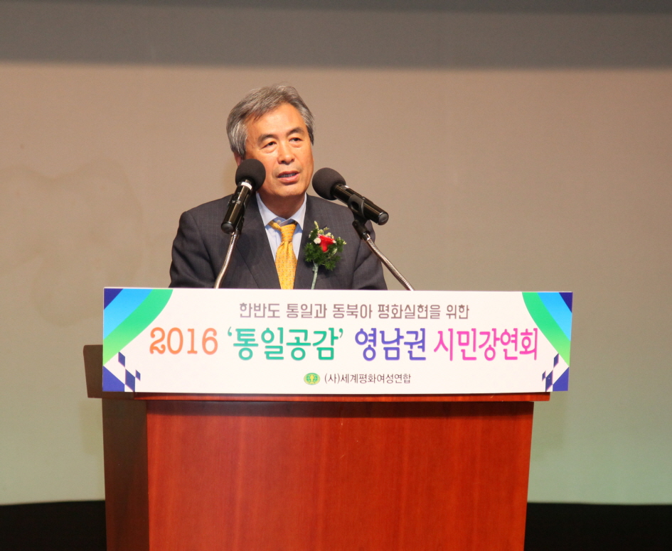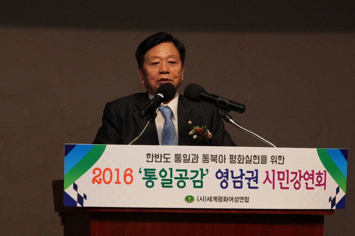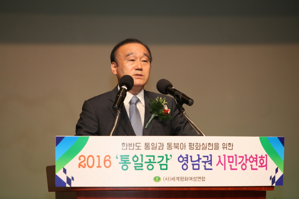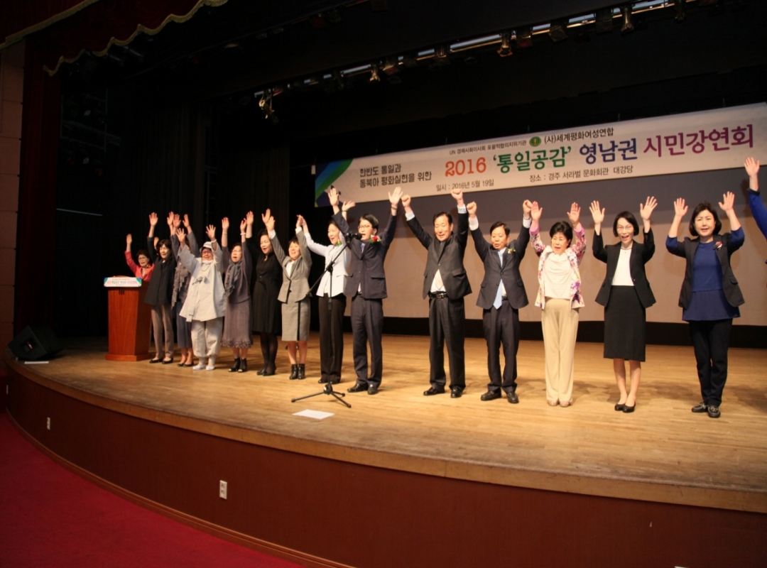 세계평화여성연합(회장 문연아, 이하 여성연합)은 5월 19일 오후2시 경주 서라벌 문화회관 대강당에서 한반도 통일과 동북아 평화실현을 위한 2016 ‘통일공감’ 영남권 시민강연회를 개최하였다.
