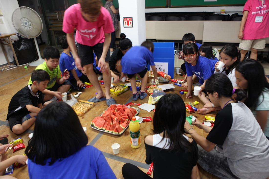 이날 저녁 식사는 봉사활동으로 힘들고 지친 학생들을 위해 특별식으로 마당에서 바비큐를 준비 했다. 매운 연기와 뜨거운 숯불에 땀을 흘리며 모둠장들은 봉사활동에 수고한 아이들을 위해 열심을 다했다. 맛있는 식사를 마친 후에는 ‘통일 레크레이션’으로 신나게 뛰고 달리며 우리 팀이 하나 되는 시간을 가졌다.
