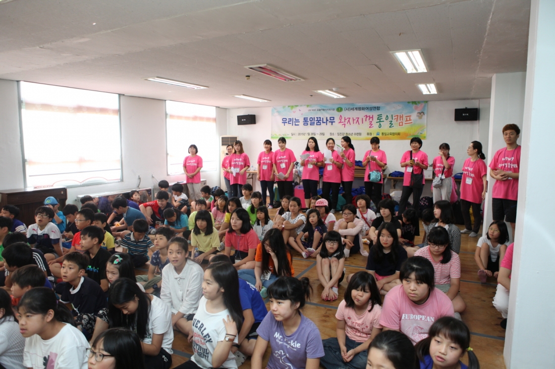 이날 열린 ‘왁자지껄 통일캠프’는 원정화 과장(한국WFWP)의 사회로 시작되어 최영선 사무총장(한국WFWP)의 환영의 인사말, 1박2일의 일정 소개, 8개 모둠별 담당 대학생 선생님 소개, 모둠별 모임으로 시작되었다.