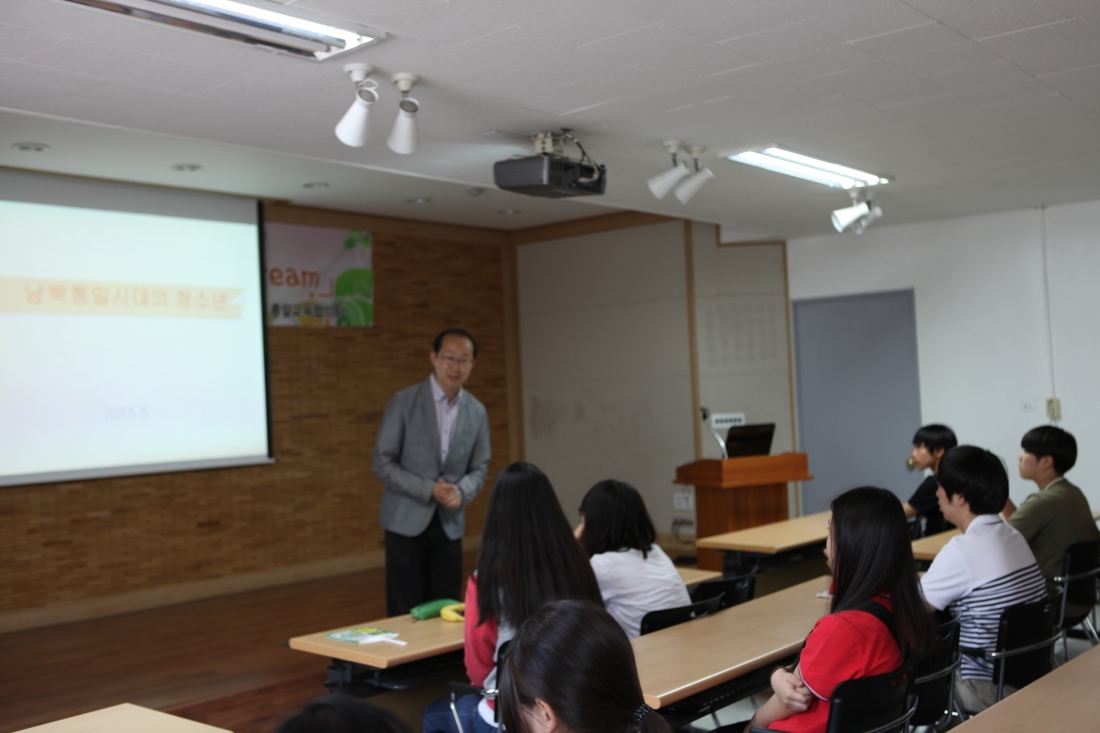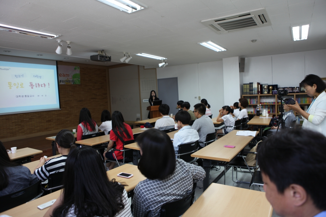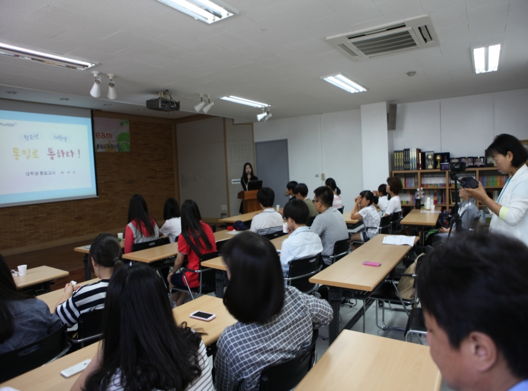 청소년 통일문화(대표: 조승수) 허지은(연세대 3) 대학생 강사는 '통일로 통하다' 라는 제목의 강의를 통해 북한사회의 구조와 최근 북한에 불어오는 변화의 바람등에 대해 설명하며 '통일은 선택이 아닌 어느날 우리에게 다가오는 일'임을 알고 항상 통일을 준비해야 한다고 강조하였다.