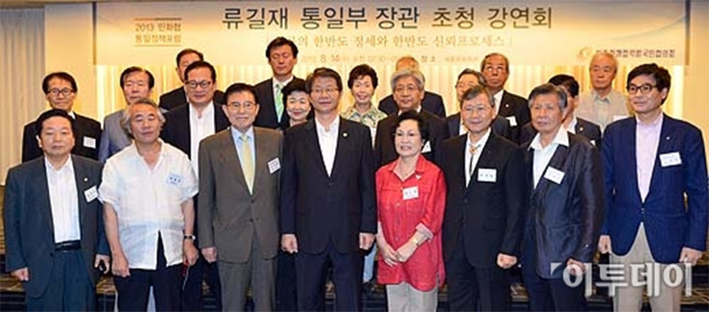 지난 8월 14일 최근 남북관계 현황과 우리정부의 대북정책 방향에 대한 의견을 나누는‘2013 민화협 통일정책포럼’이 ‘최근 한반도 정세와 한반도 신뢰프로세스’를 주제로 류길재 통일부 장관 초청강연이 있었다. 본 연합에서는 문난영 회장 외 2명이 참석하였다.