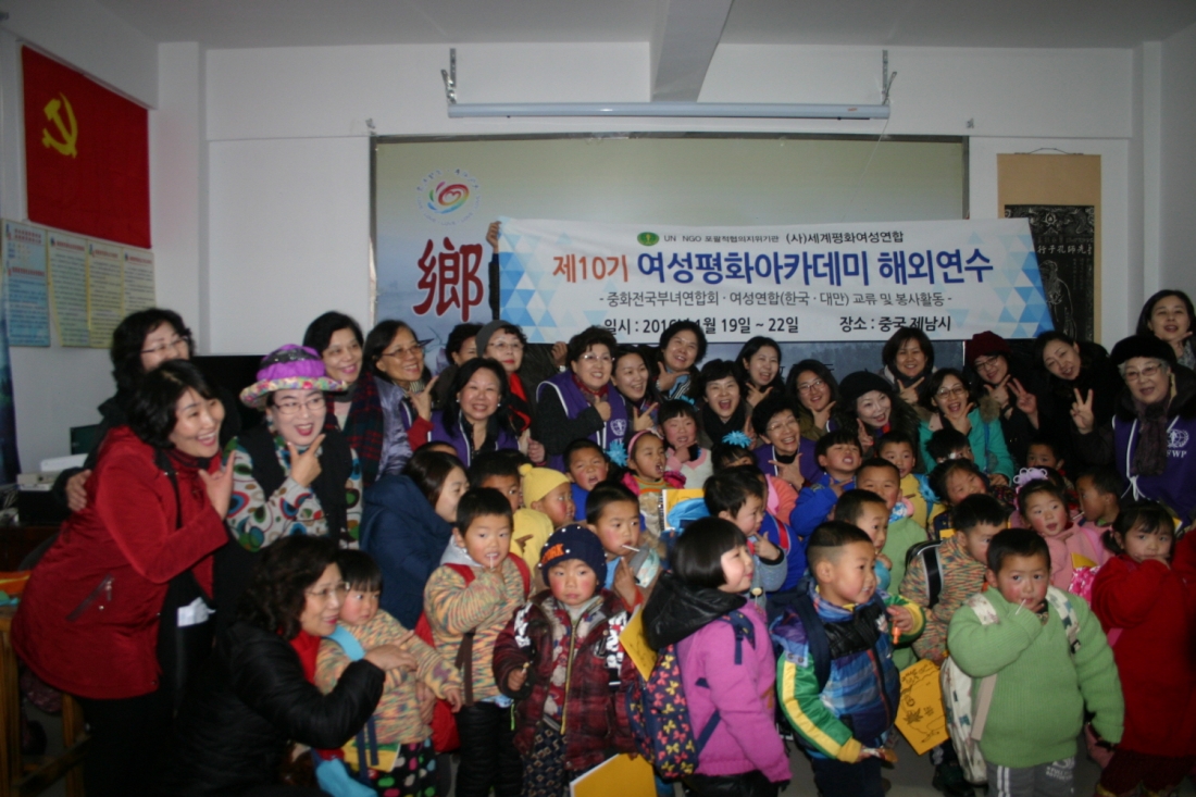 제남시 사수현의 아동돌봄센터를 찾은 한국, 대만 여성연합 임원 및 회원들은 센터를 둘러보며 시설과 운영에 대한 설명을 듣는 시간을 가졌다. 또 초등반 어린이들과 함께 한국 참석자들이 준비한 손유희 동요와 종이접기 활동을 하고, 의류, 책가방, 인형, 문구용품 등 한국에서 준비 해 간 선물을 나눠주었다. 특별히 사수현 부녀연합회 주석과 사수현 당 서기 및 임원들이 참석자들과 함께 활동하며 한국과 대만에서 찾은 방문단에게 감사의 인사를 전했다.